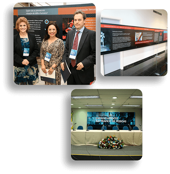 A pedido do TRT, fomos os responsáveis pela organização do simpósio sobre o Enfrentamento ao Tráfico de Pessoas com o objetivo de capacitar e aperfeiçoar profissionalmente o público presente.